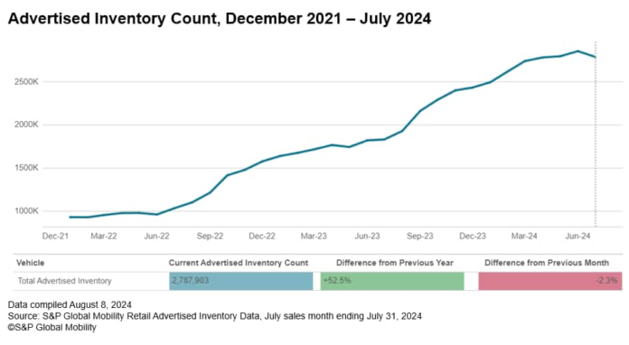 at 2.788 million vehicles, up 52.5% vs. last July, but down 2.3%