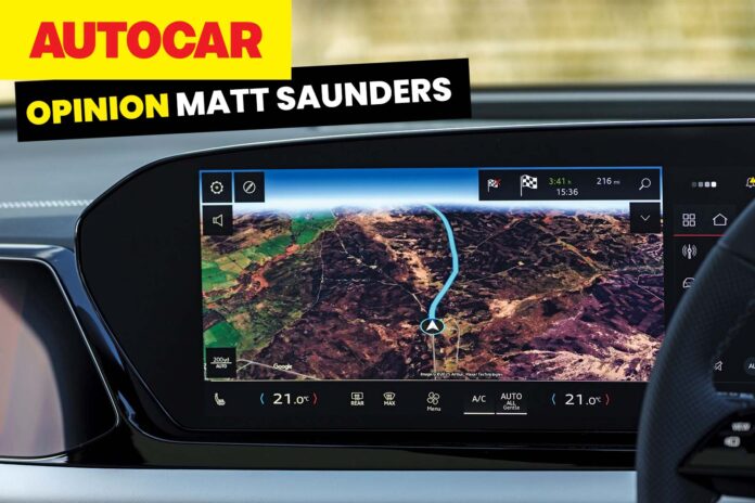 Some uselessly zoomed-in view of a car on some featureless road, a crudely digitised rendition of what you could see out of the windscreen anyway but with a big blue route super-imposed on top of it that extended into the middle distance, going around corners, junctions and roundabouts and requiring all the mental acuity of a mixed salad to correlate it with the world ahead.